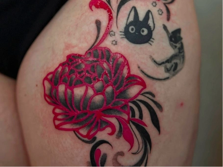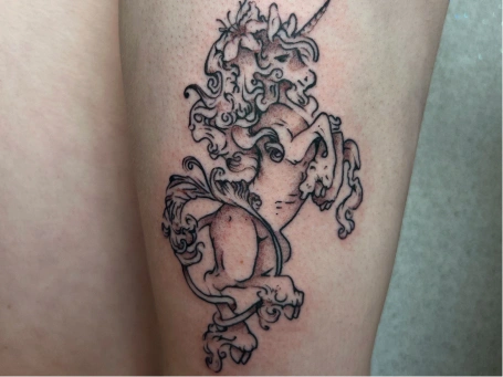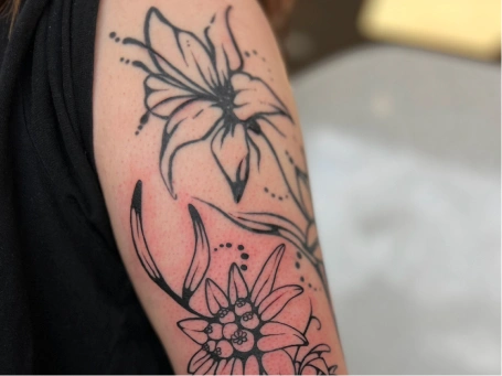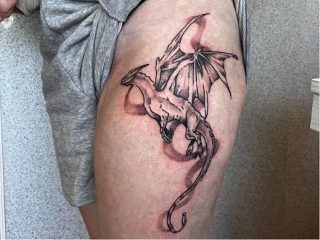I’m Emily, a tattoo artist who loves creating work that feels playful, bold, and a little unexpected. I draw from both traditional and ignorant styles—balancing strong, confident lines with finer details to bring each piece to life. My goal is to make tattoos that have character, whether that’s lighthearted, quirky, or quietly offbeat.