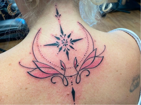 With over 16 years of professional experience, Jenny is a highly skilled tattoo artist specialising in Ornamental, Neo-traditional, and decorative Dotwork designs. Her work is known for its intricate details, balanced composition, and deeply personal symbolism, blending bold Neo-traditional elements with fine Ornamental patterns and precision dotwork.